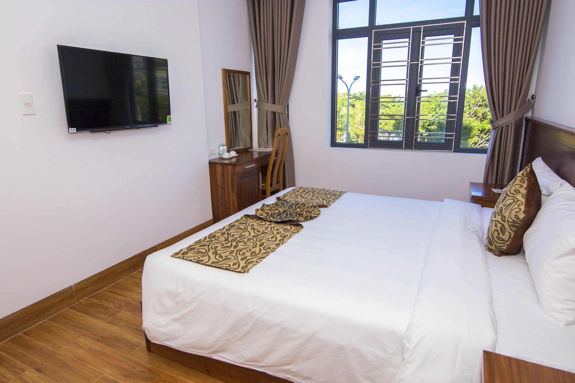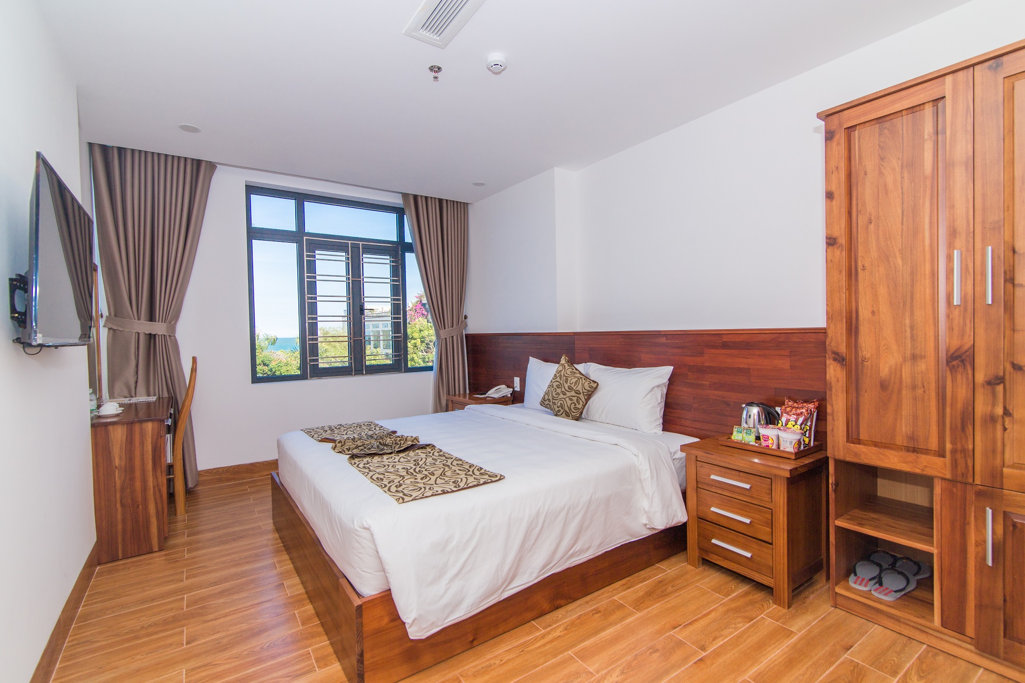 Phòng Standard Double có diện tích khoảng 18m2 , với 1 giường queen size được thiết kế hài hòa với nội thất sang trọng và đầy đủ tiện nghi hiện đại và đến sự thoải mái, tiện lợi nhất cho quý khách.